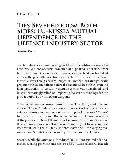 Pdf Ties Severed From Both Sides Eu Russia Mutual Dependence In The Defence Industry Sector Andras Racz Academia Edu
