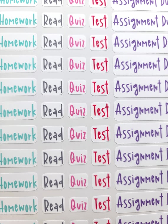 128 Homework Study Quiz Test Assignment Due Planner Stickers Etsy