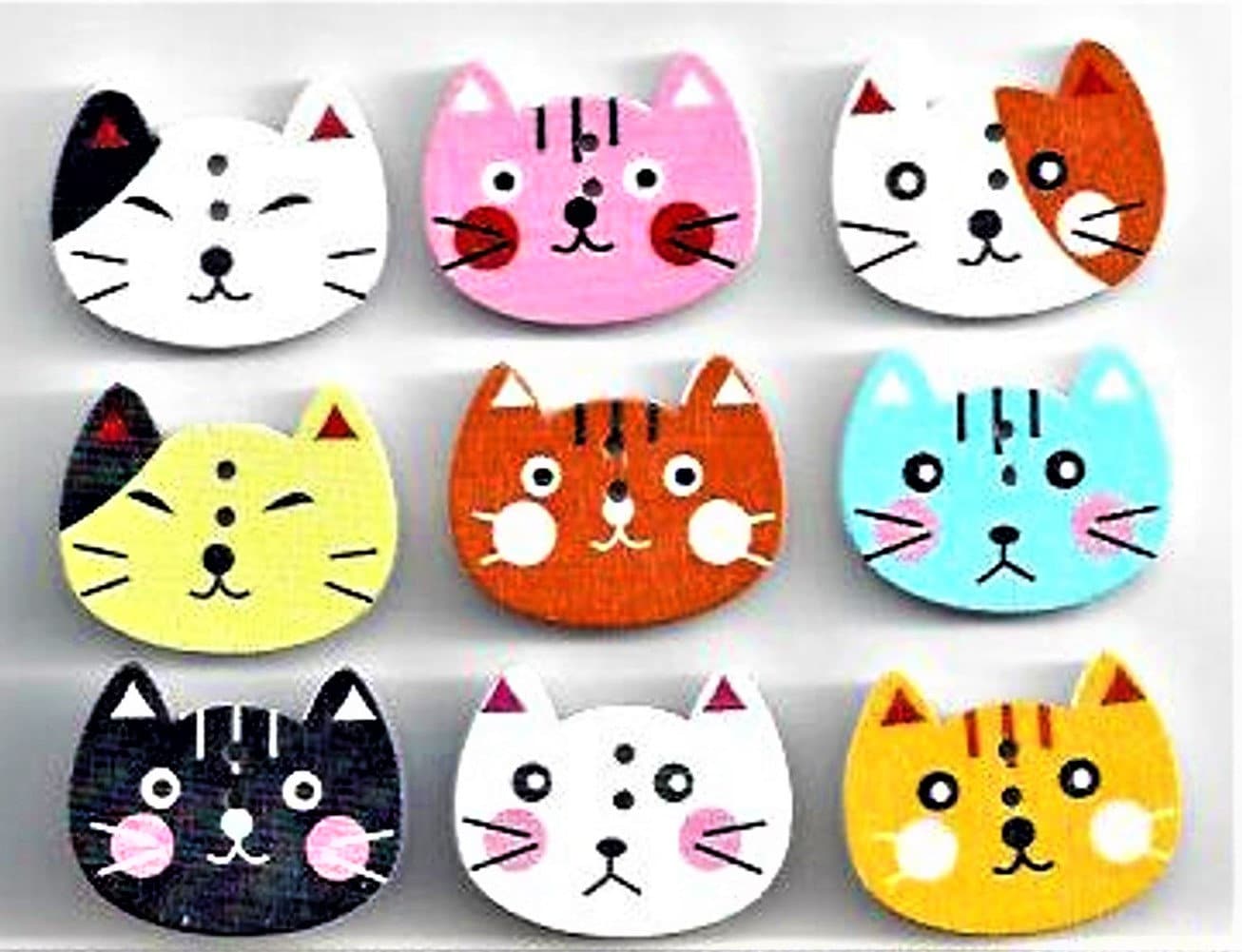 131 Wooden Cat Head Buttons Cat Faces 2 Hole Sew Through Etsy
